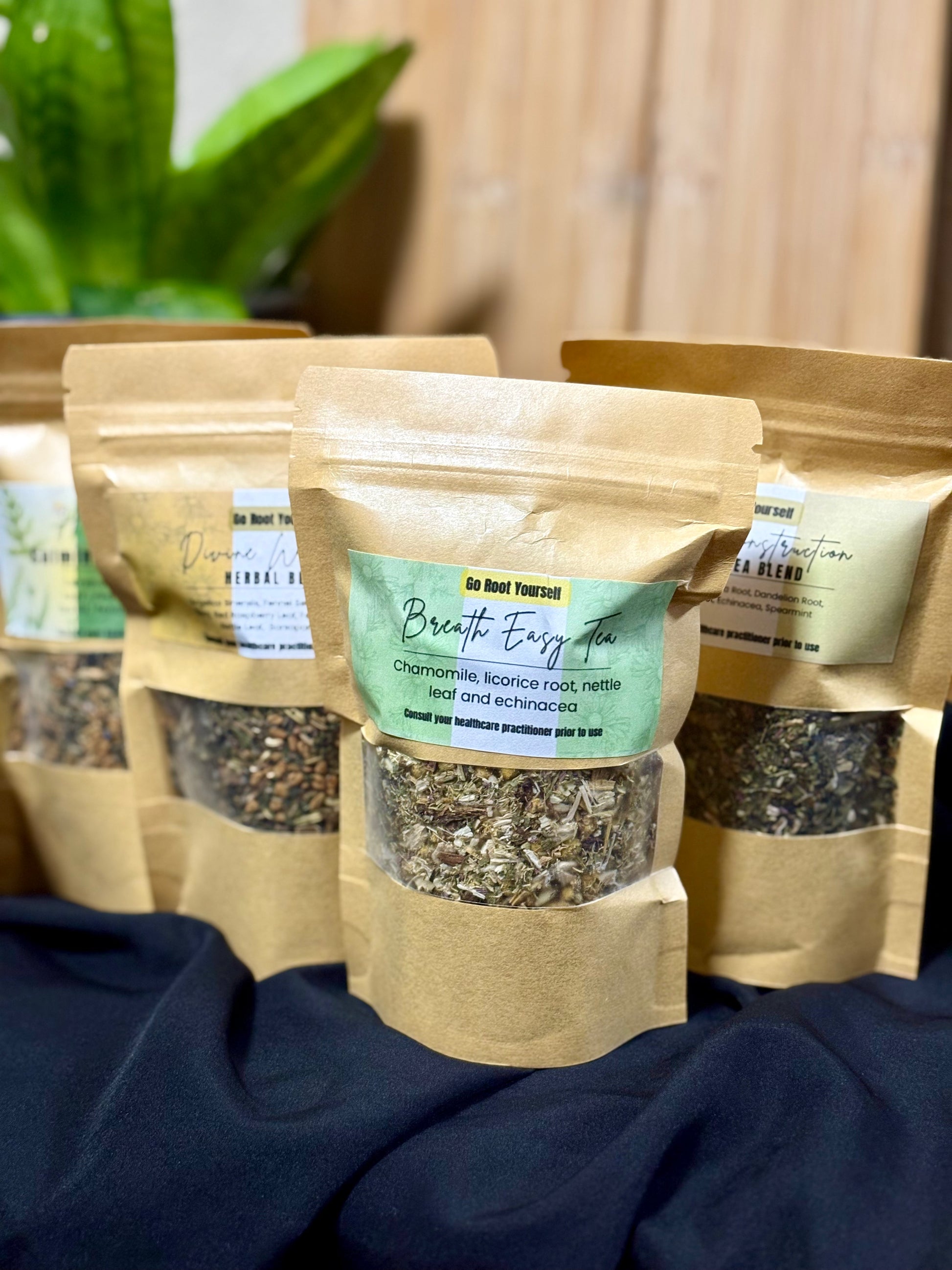 Breath Easy Tea is the perfect solution for chest congestion, sore throat, and allergies! With mucus-breaking, inflammation-reducing, and immune-boosting properties, this tea pulls double duty. Just add hot water to 1-2 tbs of herbs, wait 15-20 mins, and sip away. Don't let sniffles get you down - breathe easy with this tea.